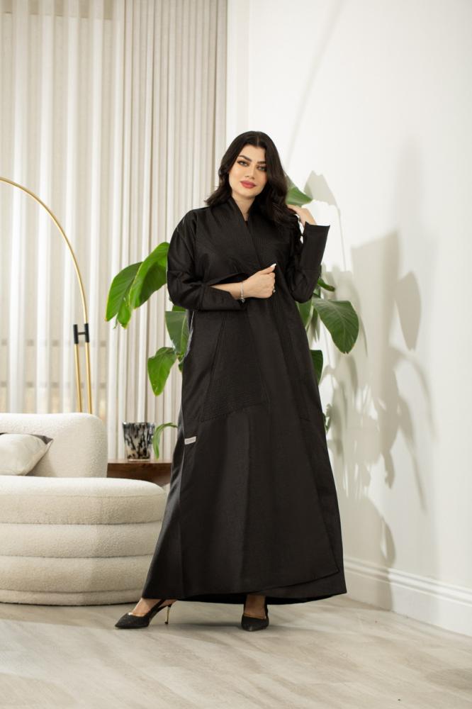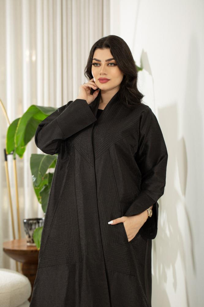 تفاصيل العباية /عباية سوداء نص كلوش بجيوب وبأكمام انيقة القماش : تفته الطرحة : اسود (العباية لف )